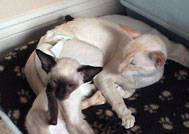 continues to sire strong healthy kittens. He lives indoors with his wives and children,